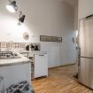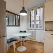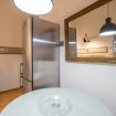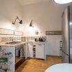L'appartamento è composto da un ampio soggiorno con zona pranzo e cucina a vista. L'arredamento è curato nei minimi dettagli, con mobili moderni che si fondono armoniosamente con tocchi di stile italiano. Il divano può essere trasformato in un comodo letto per ospitare eventuali ospiti aggiuntivi.